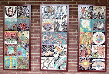The icon was made in limestone, and tiles were embossed on each side of the monumental piece. Each mural was created by a team of students working on a specific design and glazing technique. The theme for the piece was �The Future and Our Dreams After Holton Arms�. After four months of dedicated work, the project was complete and was installed during the month of May 2008. A wonderful dedication ceremony was held at Holton Arms School with the presence of all the students.