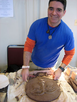 During the open house, Alfredo displayed the complete project completed on paper and explained to several hundred invitees the nature of the project. As part of the presentation, he sculpted part of the centerpiece, demonstrating his method of work.