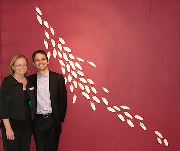 Novie, husband Chris, and her beautiful cascade of ceramic feathers