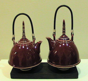 It was a true gift to have this show at Lee Center and to see the works of so many talented artists from Europe in the U.S. The curator of this show, Novie Trump, worked for a month in Wales as the artist in residence at the Fireworks Studios in Cardiff Wales and exhibited her work with a solo show at the Llantarnam Grange Arts Centre in Cwmbran, Wales in conjunction with Art Exchange Arlington >=< Cwmbran where the first part of the show took place. Artist Melanie Brown was the current resident artist at Lee Arts Center for the month of June and presented a two-day master workshop on teapot construction.