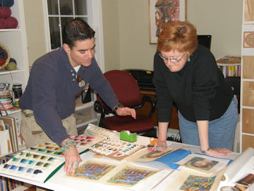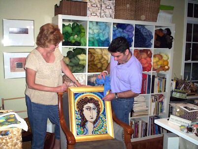 Alfredo traveled to London to meet with the directors from Phoenix Designs and was presented with the first printed canvas to approve the final designs before the entire series is printed and presented in the U.S. Each kit will include a Zweigart high quality premium printed canvas, a complete selection of the finest and high quality wools from silk mohair blends imported from Switzerland and 100% pure wool from New Zealand, needles, a color chart, designer notes and instructions, and an artist statement about the design from Alfredo Ratinoff in an elegantly designed box. Elizabeth Lay provides an excellent educational website with Flash animation to demonstrate the stitching process. In addition to Alfredo's designs, Elizabeth Lay is also presenting a selection of her own new designs exclusively created for this one-of-a-kind line. Her designs include her renowned still lifes and exquisite geometrical patterns as well as her new Greek mythology series, including her latest creation �Apollo� in which Liz explores the needlepoint medium to the maximum extent through textures and colors of unique beauty as a tribute to ancient Greek art. The kits will be available for sale online, galleries, and in museum gift shops. Click here for more information.